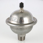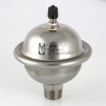Компенсатор гидроударов VT.CAR 19 представляет собой миниатюрный бак из нержавеющей стали марки AISI 304L с внутренней разделительной мембраной из эластомера EPDM. Небольшие выпуклости на поверхности мембраны обеспечивают ее неплотное примыкание к корпусу и максимальную площадь контакта мембраны с транспортируемой средой.