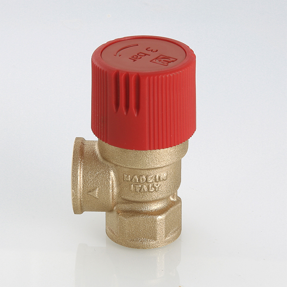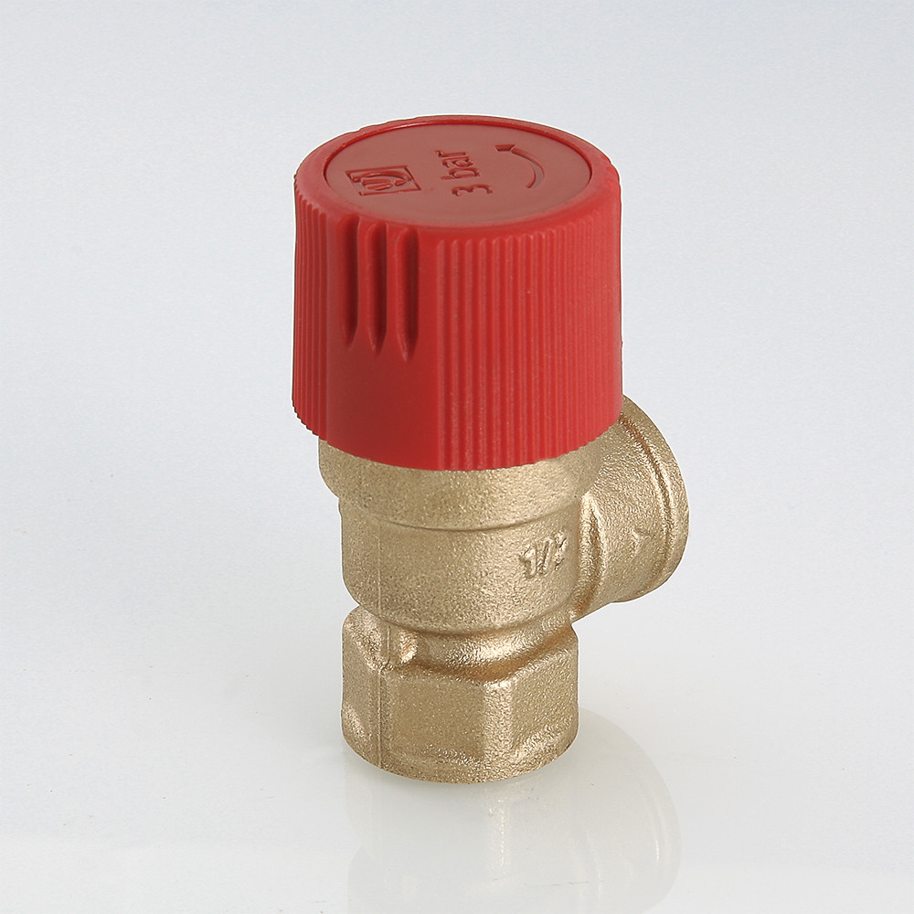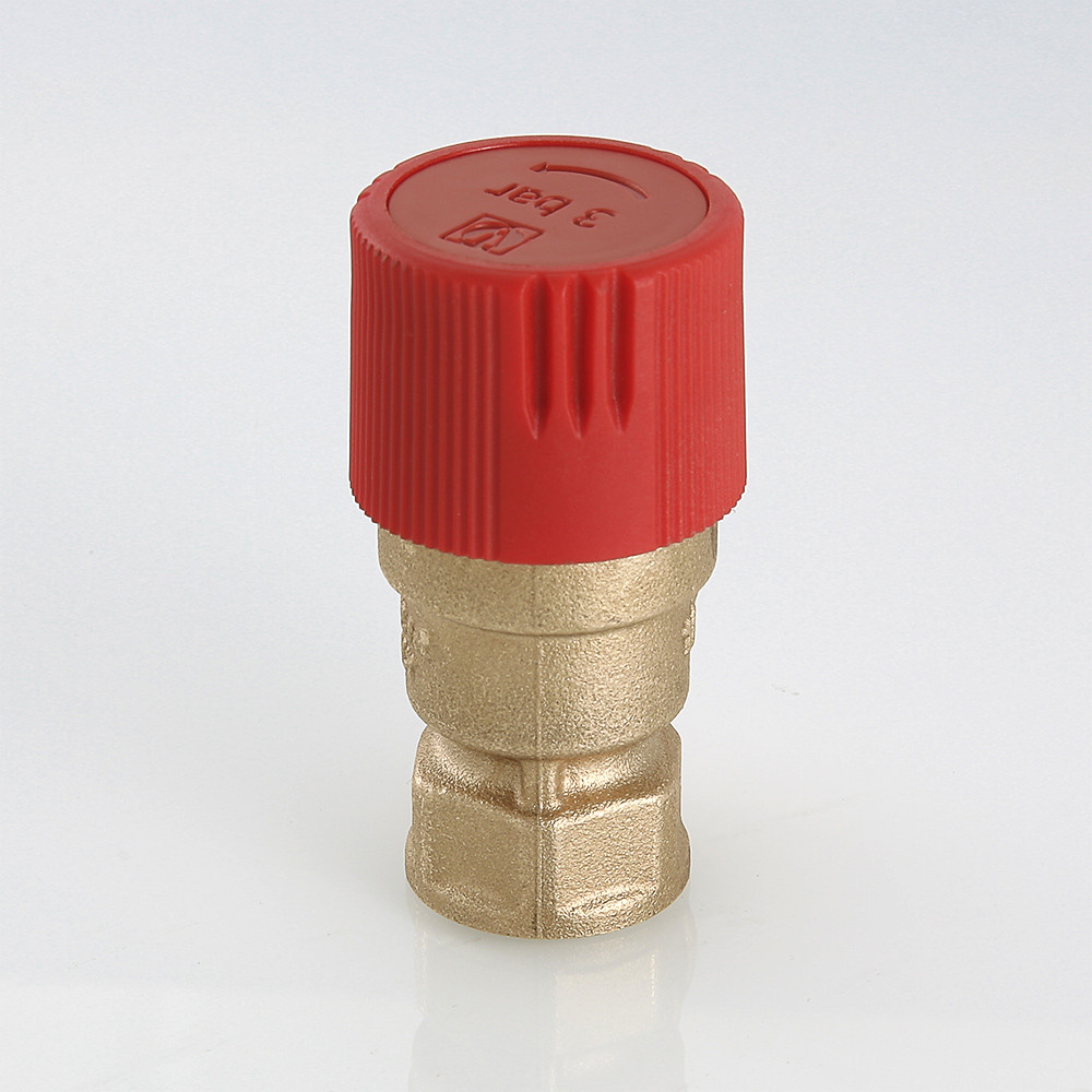 Клапан предохранительный нерегулируемый, c фиксированной заводской настройкой 1,5/3,0/6 бар (для удобства пользования введена цветовая маркировка: черный колпачок – 1,5 бара, красный – 3, желтый – 6 бар). Обеспечивает защиту от превышения давления водогрейных котлов, бойлеров, сосудов под давлением, систем отопления, напорных трубопроводов сбросом рабочей среды (в качестве рабочей среды может использоваться вода, растворы этиленгликоля или пропиленгликоля и другие жидкости, нейтральные по отношению к материалам клапана) в окружающую среду либо дренажный трубопровод. Максимальная рабочая температура – 115 °С. Предусмотрена возможность ручного открытия клапана предохранительного для проверки работоспособности, профилактики залипания золотниковой обоймы. Резьба присоединения – внутренняя, 1/2".