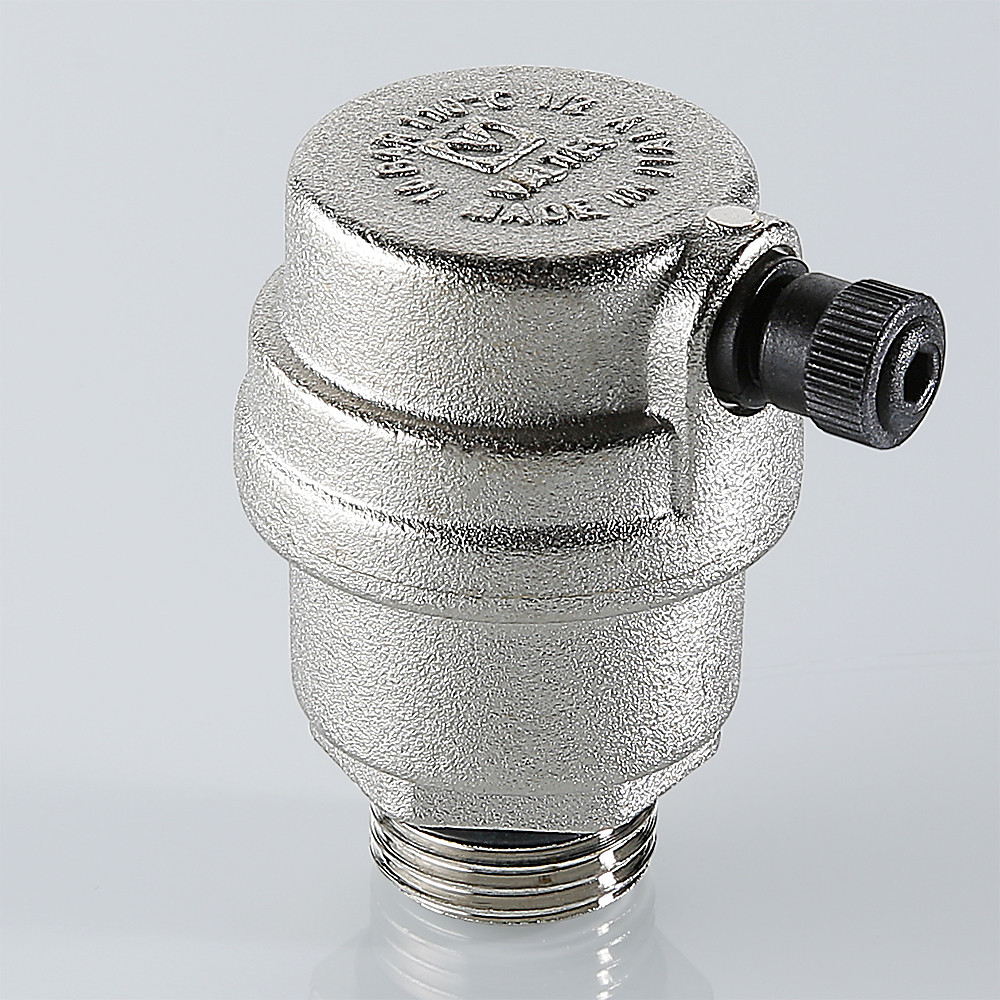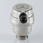 (VT.502.NH) Автоматический воздухоотводчик поплавкового типа с пружинным золотником. Может использоваться на трубопроводах, транспортирующих воду, этилен- и пропиленгликолевый незамерзающий теплоноситель, другие жидкости, неагрессивные к материалам изделия. Ремонтопригодный. Детали корпуса воздухоотводчика выполнены из качественной сантехнической латуни, никелированы. Материал уплотняющей прокладки – эластомер EPDM, поплавка – полипропилен, пружины – нержавеющая сталь AISI 306, держателя золотника и жиклера – нейлон. Воздухоотводчик допущен к применению в системах с рабочей температурой до 110 °С и давлением до 10 бар.