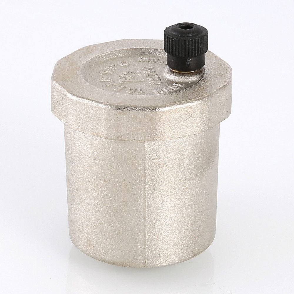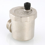 (VT.502.NA) Воздухоотводчик автоматический угловой может использоваться на трубопроводах, транспортирующих воду, этилен- и пропиленгликолевый незамерзающий теплоноситель, другие жидкости, неагрессивные к материалам изделия. Конструкция воздухоотводчика – поплавковая, с рычажным исполнительным механизмом. Ремонтопригодный. Детали корпуса воздухоотводчика выполнены из качественной сантехнической латуни, никелированы. Присоединительная резьба – наружная, 1/2".