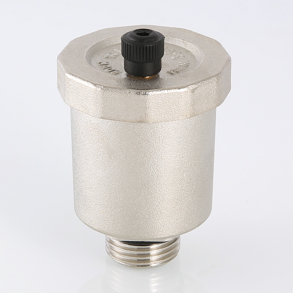(VT.502.NV) Воздухоотводчик автоматический вертикальный может использоваться на трубопроводах, транспортирующих воду, этилен- и пропиленгликолевый незамерзающий теплоноситель, другие жидкости, неагрессивные к материалам изделия. Конструкция воздухоотводчика – поплавковая, с рычажным исполнительным механизмом. Ремонтопригодный. Детали корпуса воздухоотводчика выполнены из качественной сантехнической латуни, никелированы. Присоединительная резьба – наружная, 1/2".