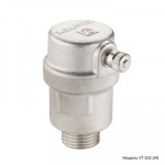 Модель воздухоотводчика VT.502.N.04 снабжена самоуплотняющимся патрубком для присоединения к трубопроводу или коллектору, что позволяет не применять дополнительный уплотнительный материал при монтаже. Воздухоотводчик совместим с сгоном-отсекателем VT.539.N.