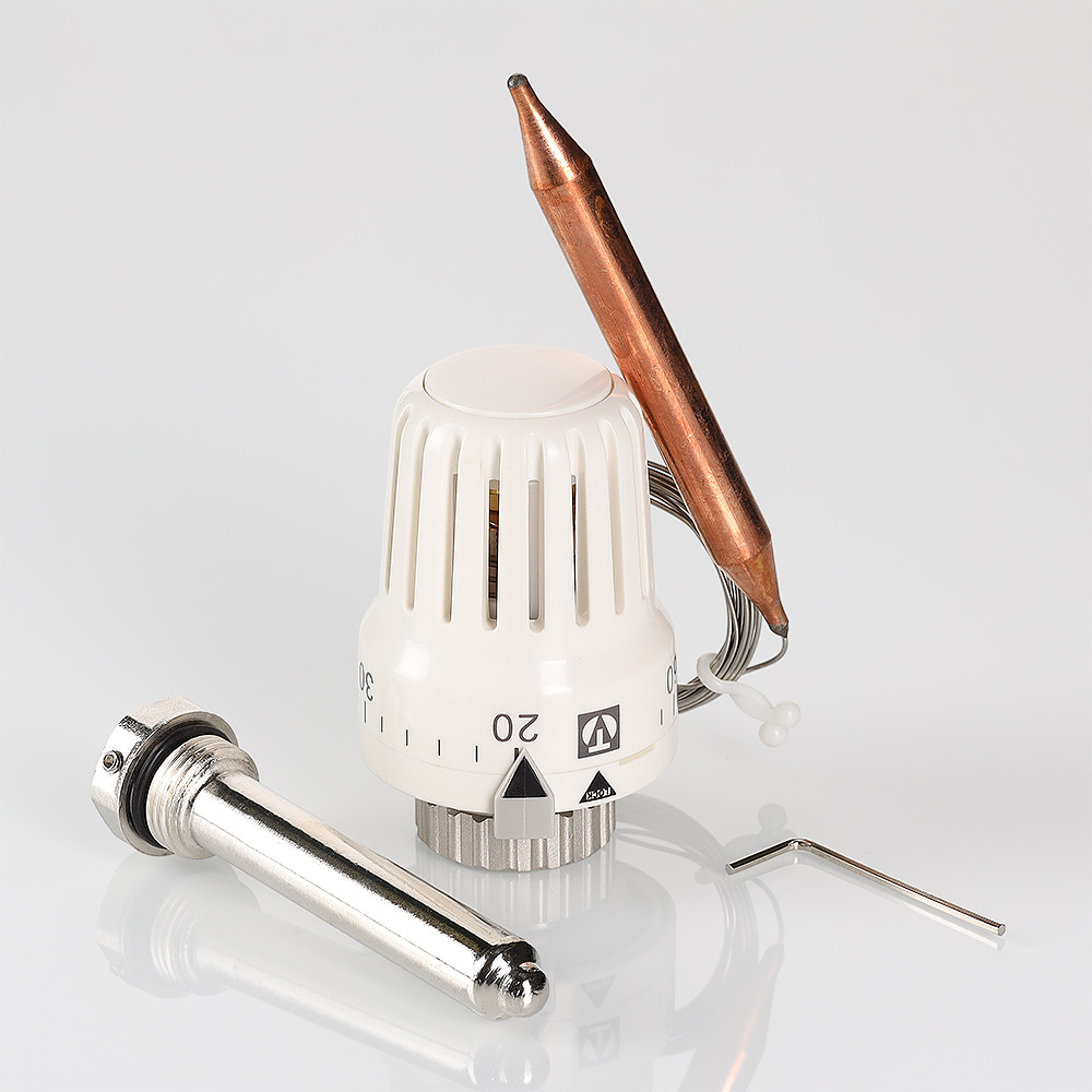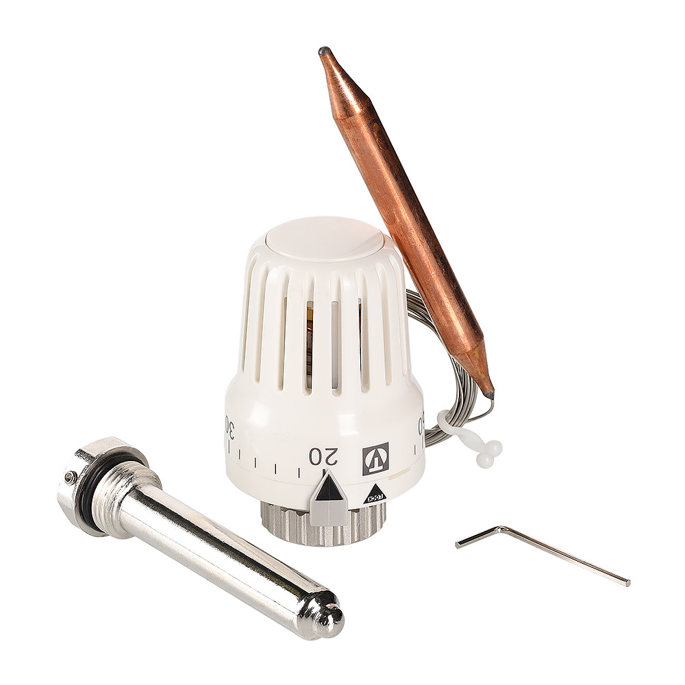 (VT.3011.0) Термостатическая головка с выносным погружным датчиком температуры VT.3011 предназначена для совместной работы с термостатическим клапаном смесительных узлов, таких как VT.COMBI, VT.DUAL, VT.VALMIX, VT.TECHNOMIX, а также для управления смесительными клапанами VT.MR01, VT.MR02, VT.MR03.