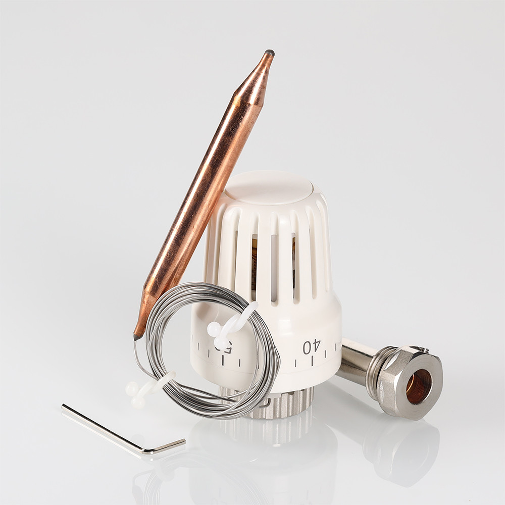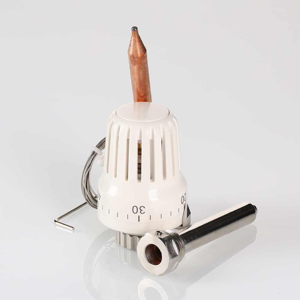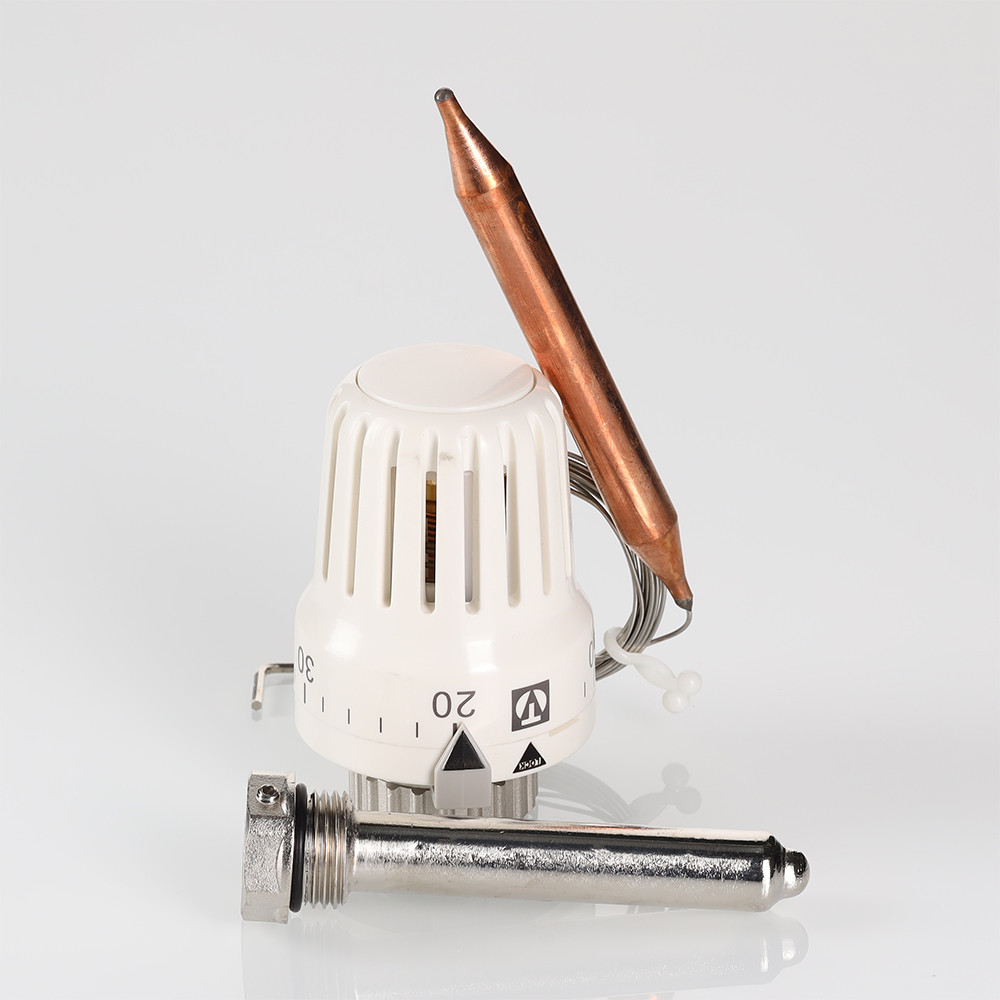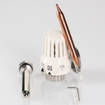 Сильфонная емкость термоголовки и соединенный с ней медной капиллярной трубкой длиной 2 м термочувствительный элемент (датчик) заполнены этилацетатом. Коэффициент объемного расширения этого вещества на 30 % выше, чем у толуола, обычно применяемого в жидкостных термоголовках. Это делает работу терморегулятора более эффективной: сокращается время реакции на изменение регулируемой температуры, а точность регулирования практически не зависит от скачков давления в системе.