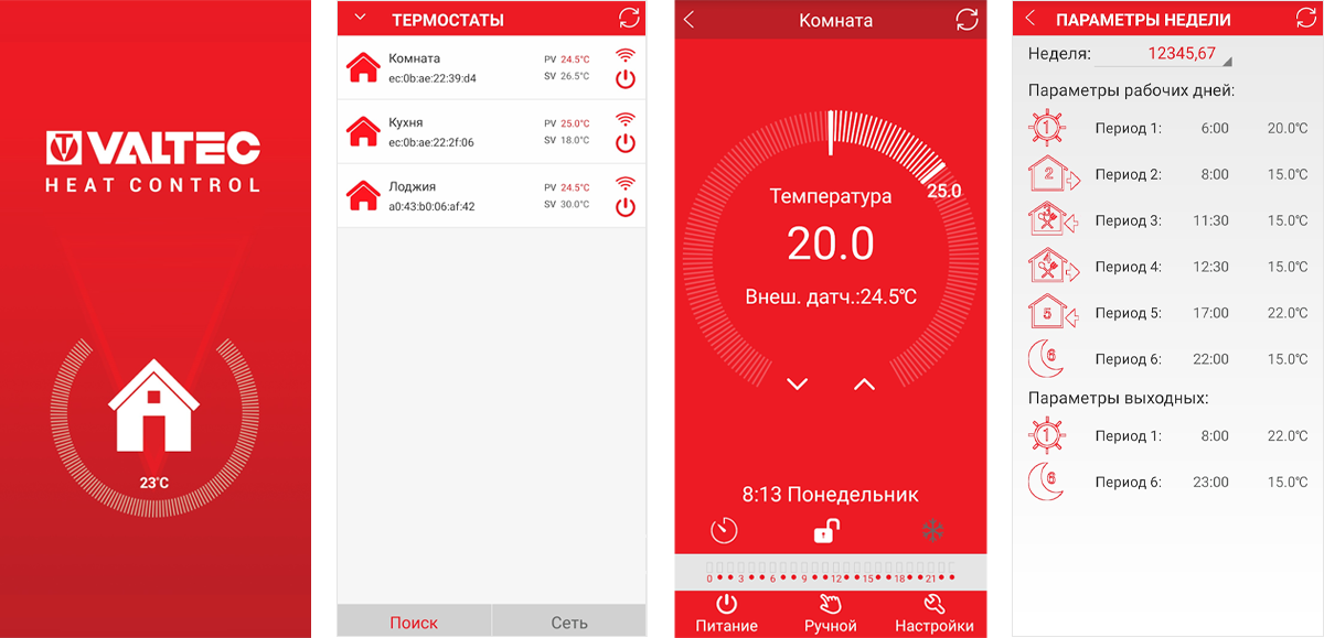 - возможность подключения к VALTEC HEAT CONTROL до восьми термостатов;
