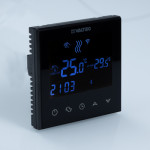 (VT.AC712.B) Хронотермостат электронный комнатный с Wi-Fi (Wi-Fi-хронотермостат) предназначен для подачи управляющего сигнала (включить/выключить) на регулирующие устройства водяного теплого пола или радиаторного отопления. Управление осуществляется в зависимости от температуры воздуха в помещении (встроенный датчик) и температуры пола (выносной датчик, входит в комплект). Возможны недельное программирование и выбор режима работы – по датчику температуры воздуха или датчику температуры пола.