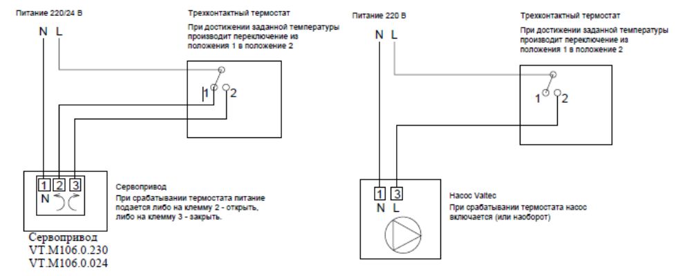 Двухпозиционное реле термостата имеет возможность включать или выключать любое оборудование, отвечающее за поддержание заданной температуры теплоносителя, управлять импульсными сервоприводами трехходовых клапанов, циркуляционными насосами, котлами.