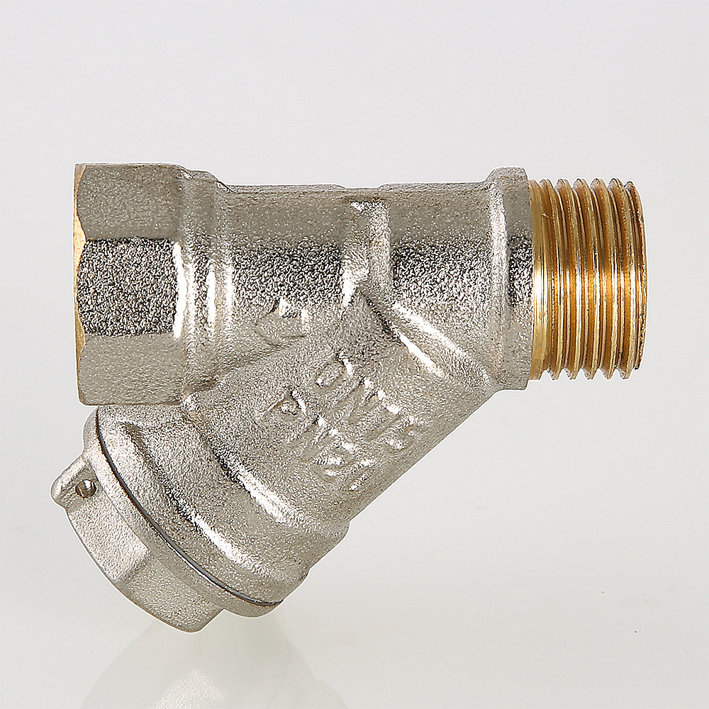 (VT.191.N) Фильтр механической очистки косого типа. Может устанавливаться в горизонтальном и вертикальном (движение потока – сверху–вниз) положении. Корпус и пробка изготовлены горячим прессованием из латуни марки CW617N (европейский стандарт EN 12165) и никелированы. Между ними предусмотрена тефлоновая уплотнительная прокладка. Пробка оснащена отверстием для пломбировки. Размер ячеек сетки фильтрующего элемента – 500 мкм, максимальное рабочее давление – 20 бар. Максимальная рабочая температура фильтруемой среды – 150 °C. Условный диаметр – 1/2". Резьба присоединения – внутренняя/наружная.