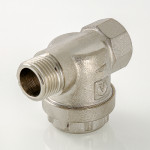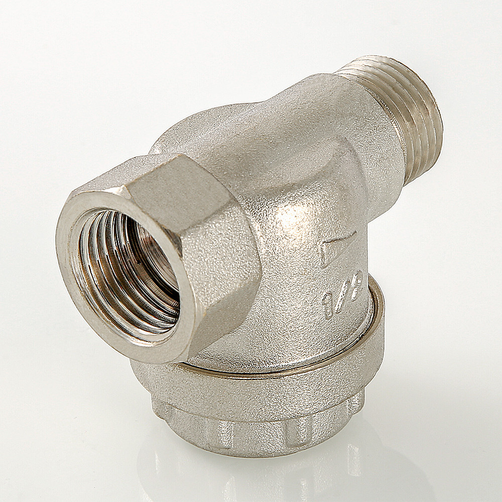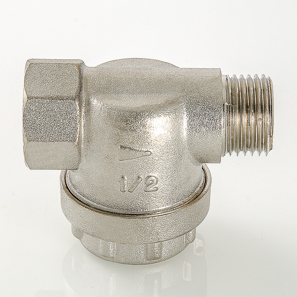 (VT.387.N) Фильтр механической очистки прямого типа. Устанавливается в горизонтальном положении, пробкой вниз. Корпус и пробка фильтра выполнены из латуни марки CW617N (европейский стандарт EN 12165), никелированы. Между ними имеется уплотнительное кольцо из EPDM. Пробка оснащена отверстием для пломбировки. Размер ячеек сетки фильтрующего элемента из нержавеющей стали – 300 мкм, максимальное рабочее давление – 16 бар. Максимальная рабочая температура фильтруемой среды – 110 °C. Резьба присоединения – внутренняя/наружная.