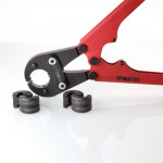 (VTm.293.L) Малогабаритные пресс-клещи VALTEC обеспечивают ручное обжатие фитингов при монтаже металлополимерных, пластиковых труб диаметром 16, 20 мм. Профиль используемых насадок – ТН. Отсутствие телескопических рукояток требует больших усилий (расчетное значение – 150 Н), чем при работе со стандартным пресс-инструментом. Усилие обжатия гильзы – 10,5 кН. Средний полный ресурс – 5000, наработка на отказ – 2500 циклов. Масса пресс-клещей без насадок – 2,49 кг. Рукоятки инструмента оснащены ПВХ-покрытием. Осевые эксцентрики позволяют производить настройку клещей при появлении избыточных люфтов.