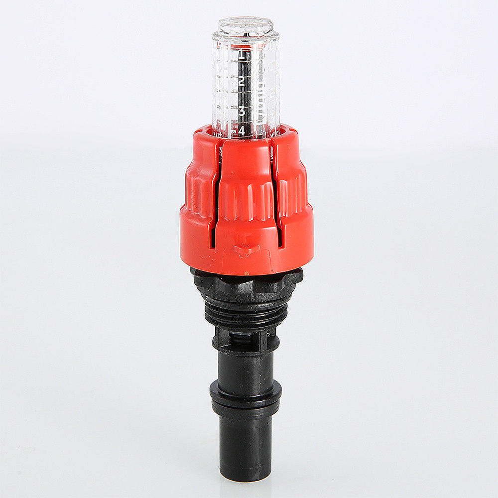 (VT.AC674) Пластиковый расходомер (ротаметр) для коллекторных блоков VTc.596, VTc.586. Предназначен для индикации и регулировки расхода теплоносителя в присоединенных контурах напольного или радиаторного отопления при наладке (гидравлической балансировке) системы. Шкала прозрачной колбы отградуирована в диапазоне расхода от 0,5 до 5,0 л/мин. Текущее значение расхода определяется по положению индикаторной шайбы. Расходомер можно разобрать и прочистить при загрязнении.