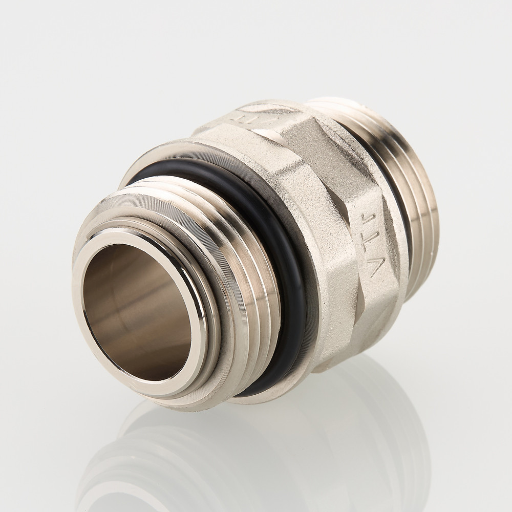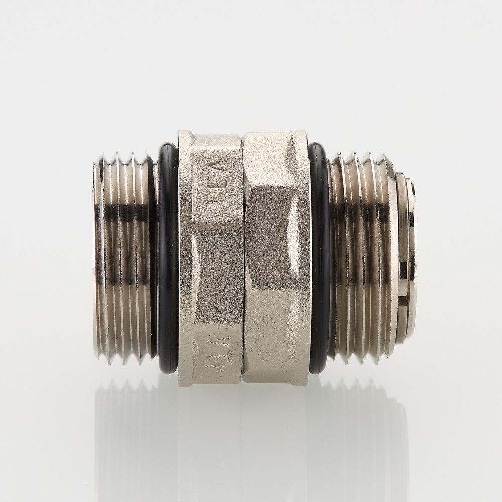 (VT.0606.NC) Сдвоенный ниппель предназначен для присоединения к коллекторам и прочим элементам с внутренней резьбой и плоскостью под О-образный уплотнитель трубопроводов систем теплоснабжения, отопления, горячего и холодного водоснабжения, в том числе питьевого.
