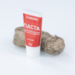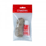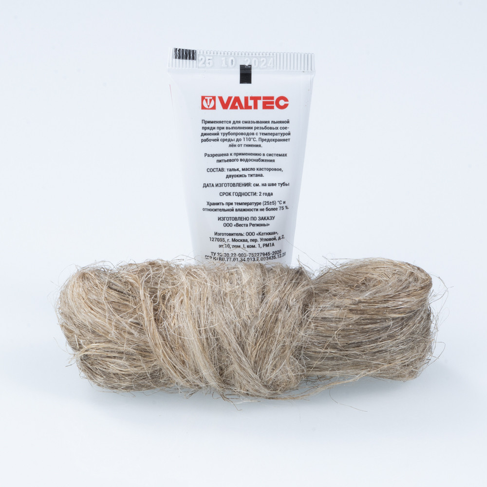 (VT.M.K) Комплект, включающий сантехнический лен и герметизирующую пасту (20 г), предназначен для уплотнения резьбовых соединений трубопроводов холодной и горячей воды, включая питьевую, систем водяного отопления, сжатого воздуха и природного газа, паровых установок низкого давления. Применение предлагаемых материалов обеспечивает абсолютную герметичность и возможность регулировки трубных соединений. Температура хранения: от –30 до +25 °С.