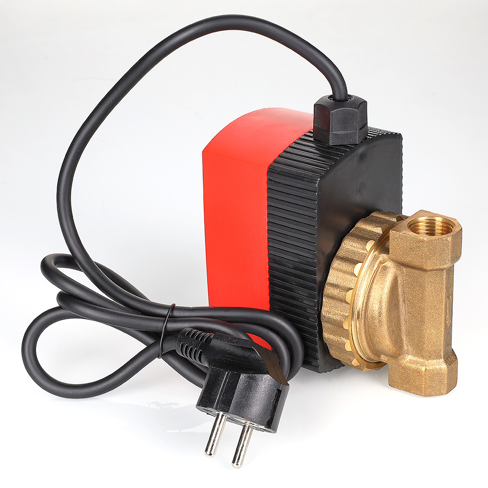 Напряжение питание насоса – 220 В (50 Гц), максимальное статическое давление – 10 бар, интервал температур воды 0–95 °C, присоединительная резьба – внутренняя, 1/2″.