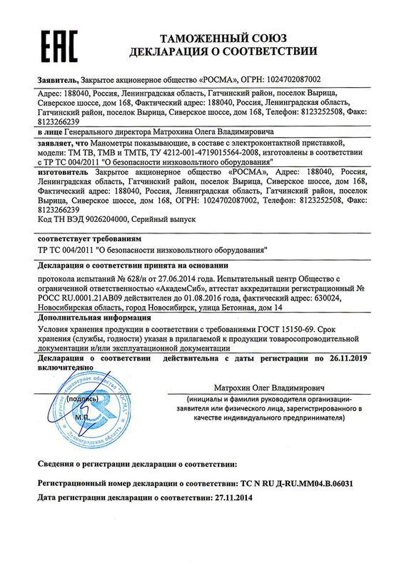 - Термоманометр TMTБ-41P с нижним подключением