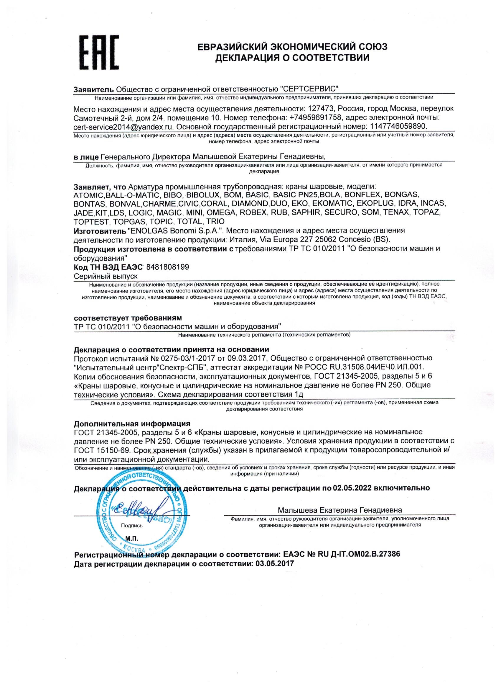 Декларация о соответствии техническому регламенту Таможенного союза 032/2013 (PDF, 532 КБ)