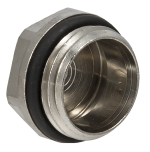(D.0015) Пробка радиаторная (радиаторная заглушка) используется для закрытия неиспользуемых присоединительных отверстий стальных радиаторов с внутренней резьбой диаметром 1/2". Выполнена из сантехнической латуни марки CW617N (по стандарту EN 12165), никелирована. Комплектуется уплотнительной прокладкой из синтетического каучука EPDM (дополнительных герметиков не требуется). Изделие допускается использовать при рабочей температуре до 110 °C и давлении до 10 бар. Теплоносителем в обслуживаемой системе может быть как вода, так и антифриз.