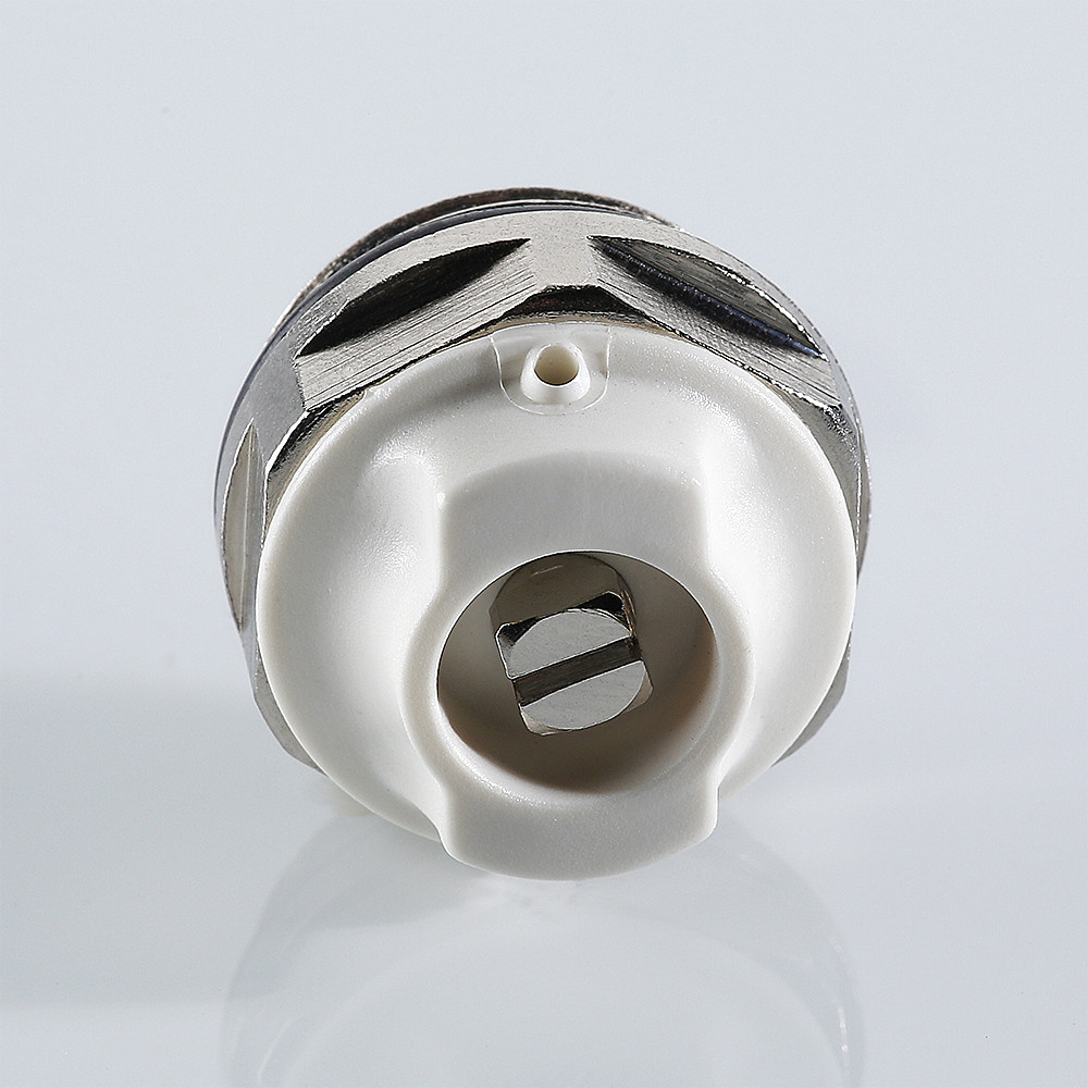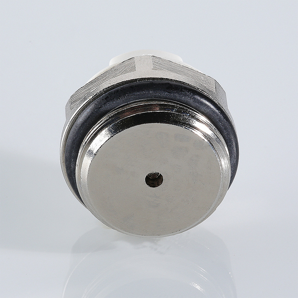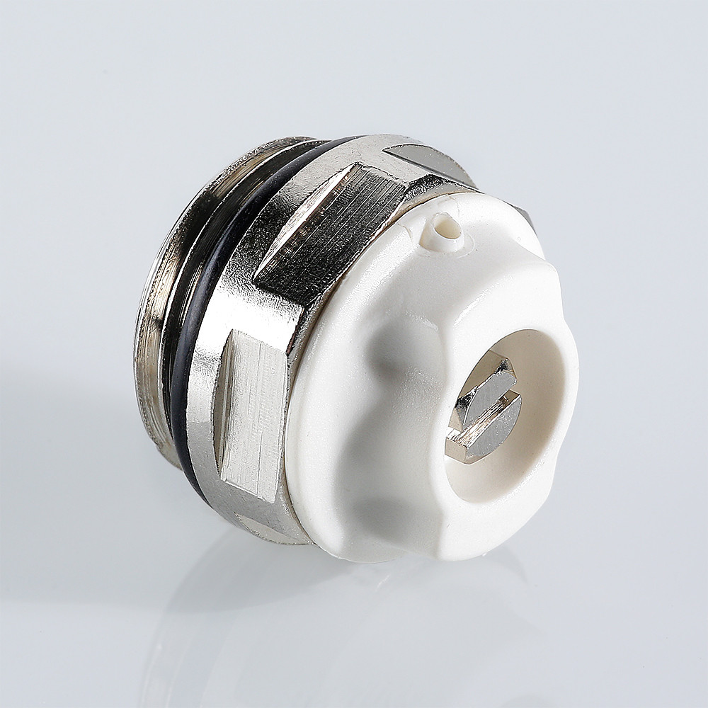(R.400) Ручной воздухоотводчик (кран Маевского) R 400 устанавливается на радиаторы систем водяного отопления – в одно из верхних присоединительных отверстий. Его корпус изготовлен из сантехнической латуни марки CW617N (по стандарту EN 12165), имеет покрытие из никеля. Предусмотрено уплотнительное кольцо из EPDM (дополнительных герметиков не требуется). Выпуск из радиатора скопившегося воздуха и других газов производится с помощью специального ключа или шлицевой отвертки – вывинчиванием винта игольчатого клапана. Изделие допускается использовать при рабочей температуре до 110 °C и давлении до 10 бар. Теплоносителем в обслуживаемой системе может быть как вода, так и антифриз. Присоединительные размеры воздухоотводчиков R 400 – 1/2". Предлагаемый аксессуар подходит для радиаторов различного типа и позволяет максимально просто решить проблему завоздушивания отопительных приборов и накопления в них водорода (при использовании алюминиевых и полубиметаллических радиаторов).