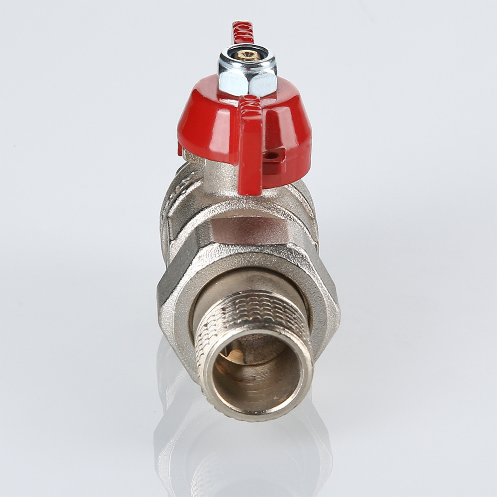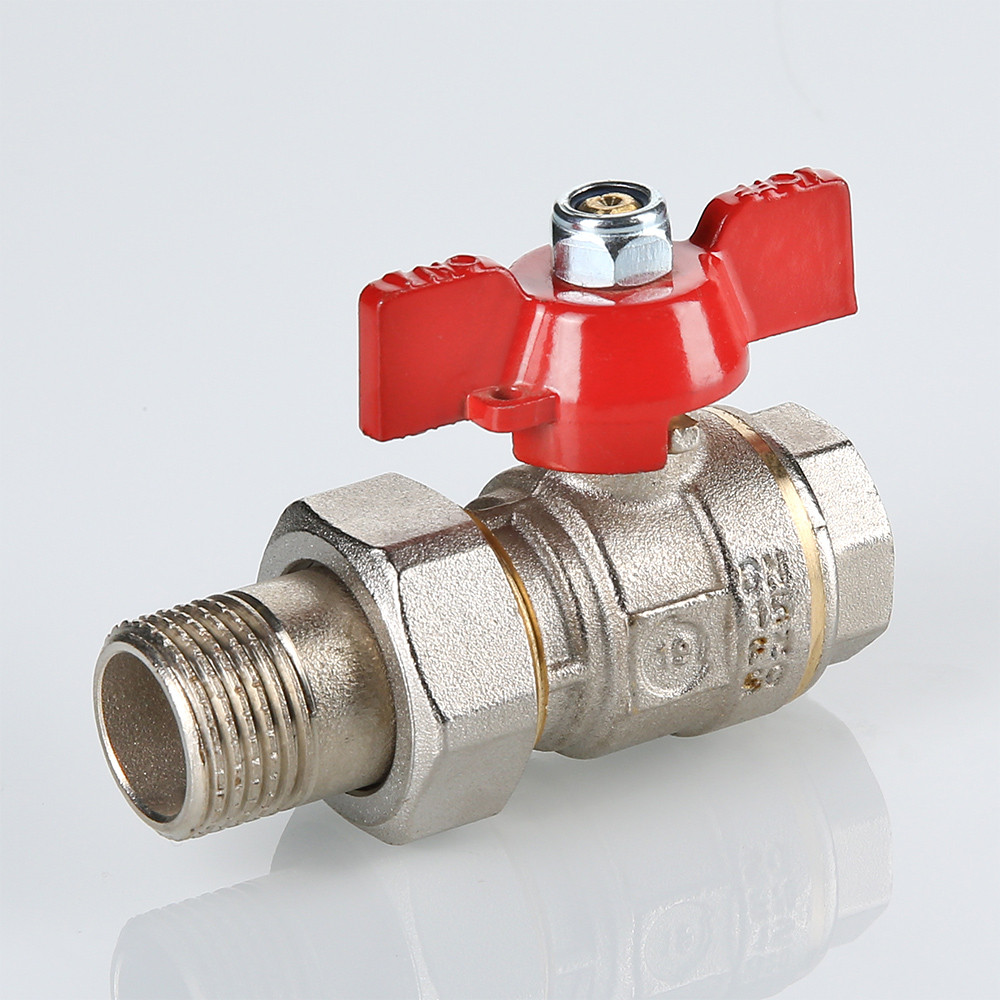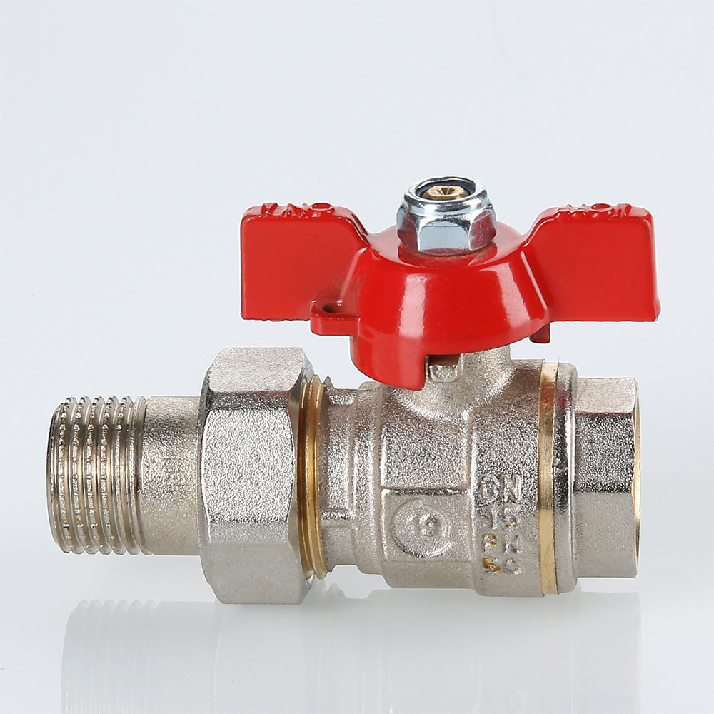Шаровой кран S 227 оснащен ручкой «бабочка» из алюминиевого сплава и соединен накидной гайкой с латунным резьбовым полусгоном, наличие которого позволяет монтировать и демонтировать арматуру без разборки трубопровода. Резьба присоединений – внутренняя/наружная.