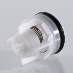 Клапан состоит нейлонового корпуса, штока с золотником и пружины из нержавеющей стали AISI 316, узел седла – из нейлоновой седельной обоймы и тефлонового седла.