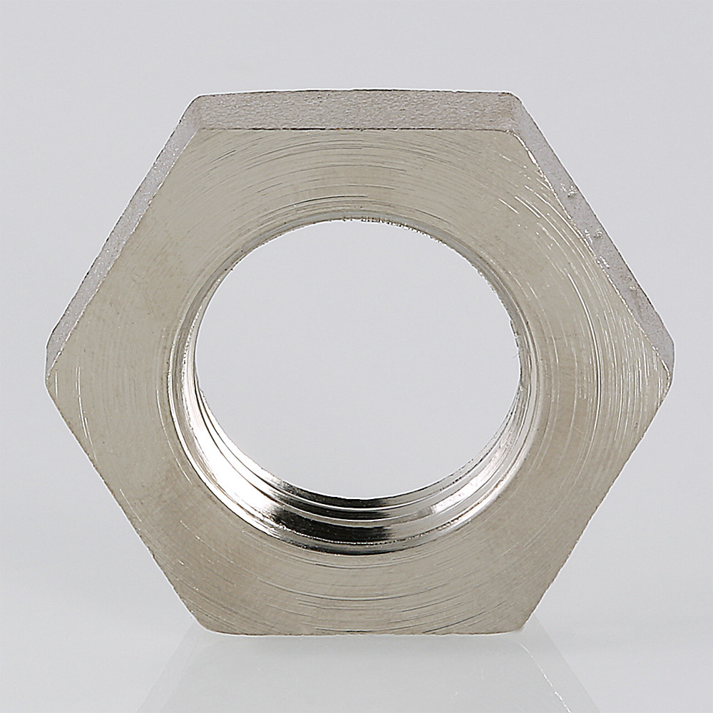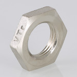 (VTr.656.N) Контргайка является наиболее недорогим, но эффективным вариантом изделий, гаечных замков, предотвращающих раскручивание резьбовых элементов (муфты, сгоны) трубопроводов вследствие вибрации, гидроударов и т.д. Форма, размеры контргайки соответствуют ГОСТу 8968-75. Латунная никелированная контргайка ГОСТ VALTEC имеет широкую рабочую поверхность, которая повышает надежность фиксации соединения (трение между гайкой и фитингом препятствует расконтриванию), помогает повысить его герметичность, скрыть выступающий уплотнитель. Резьба – трубная цилиндрическая, совместимая с наружной конической по ГОСТ 6211.