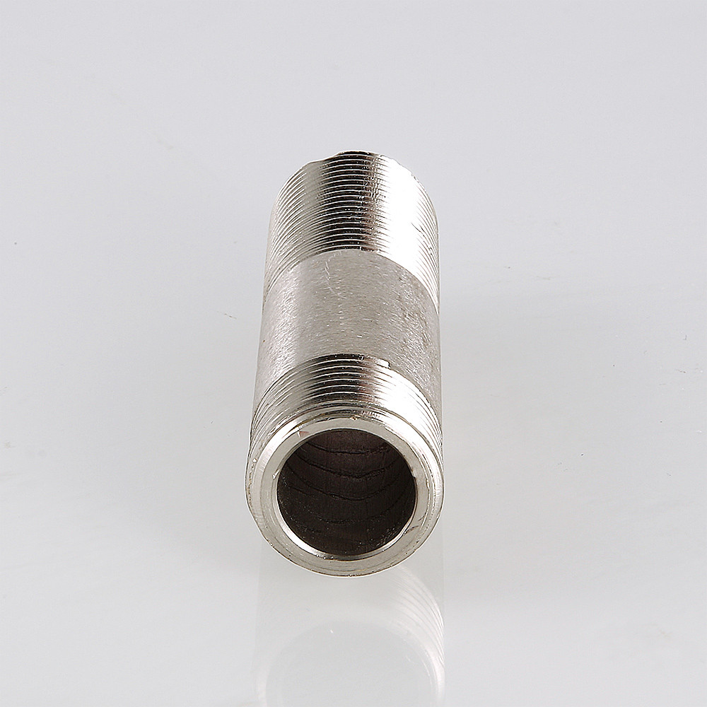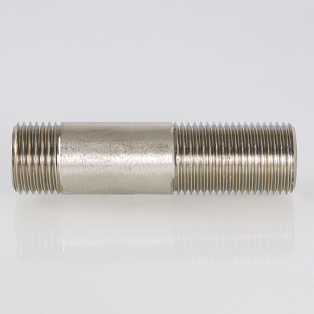 (VTr.653.N) Латунные никелированные сгоны длиной от 80 до 250 мм, предназначенные для соединения частей трубопровода диаметром 1/2". Резьба – наружная, цилиндрическая трубная по ГОСТу 6357 (ISO 228, EN 10226), нанесена на участки длиной 10 и 40 мм.