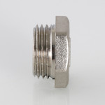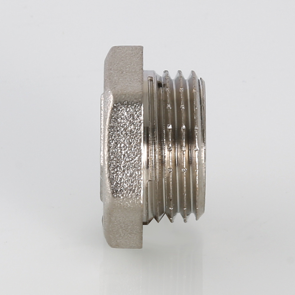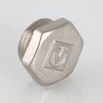 (VTr.583.N) Латунная никелированная трубопроводная пробка с шестигранной головкой. Имеет наружную трубную цилиндрическую резьбу по ГОСТу 6357 (ISO 228, EN 10226).
