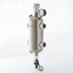 Гидравлическая стрелка из нержавеющей стали комплектуется манометром, дренажным клапаном, автоматическим воздухоотводчиком с отсекающим клапаном. На корпусе предусмотрены резьбовые патрубки для дополнительной установки датчика температуры, термометра, магнитного шламоуловителя. Патрубки заглушены резьбовыми пробками.