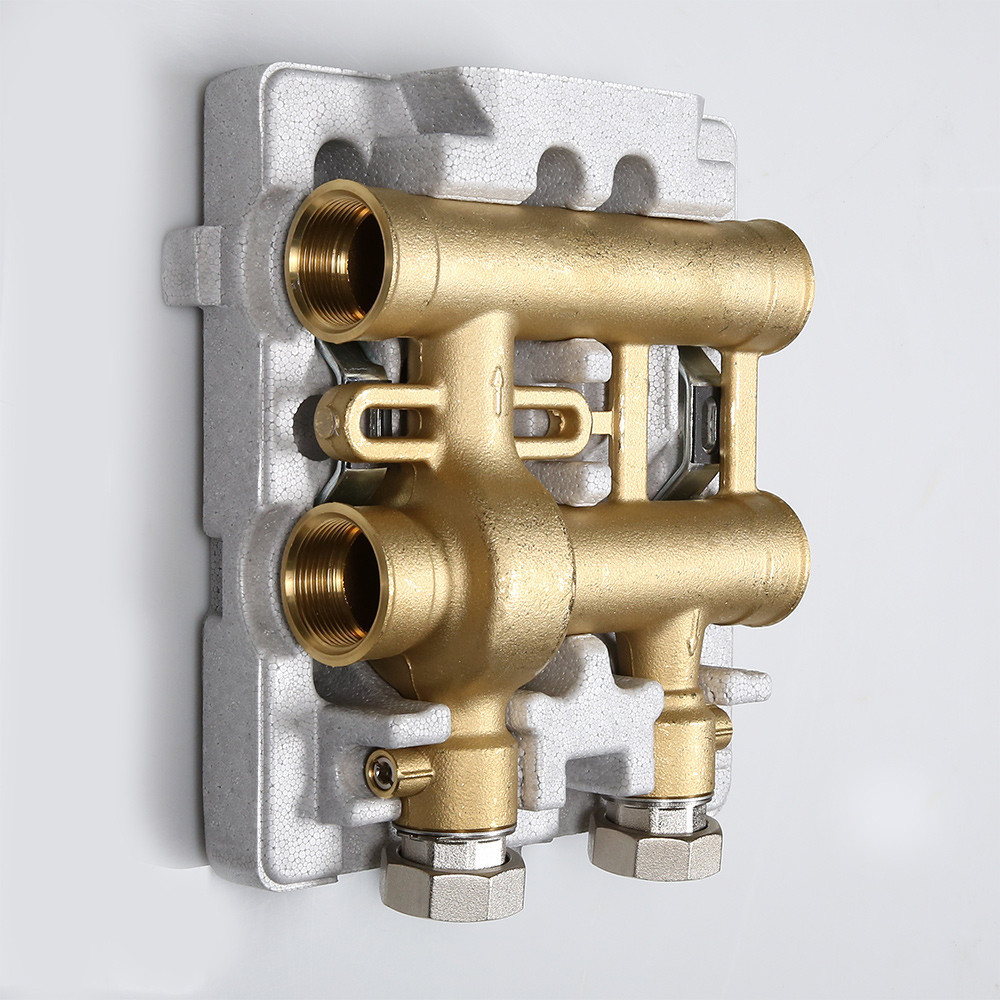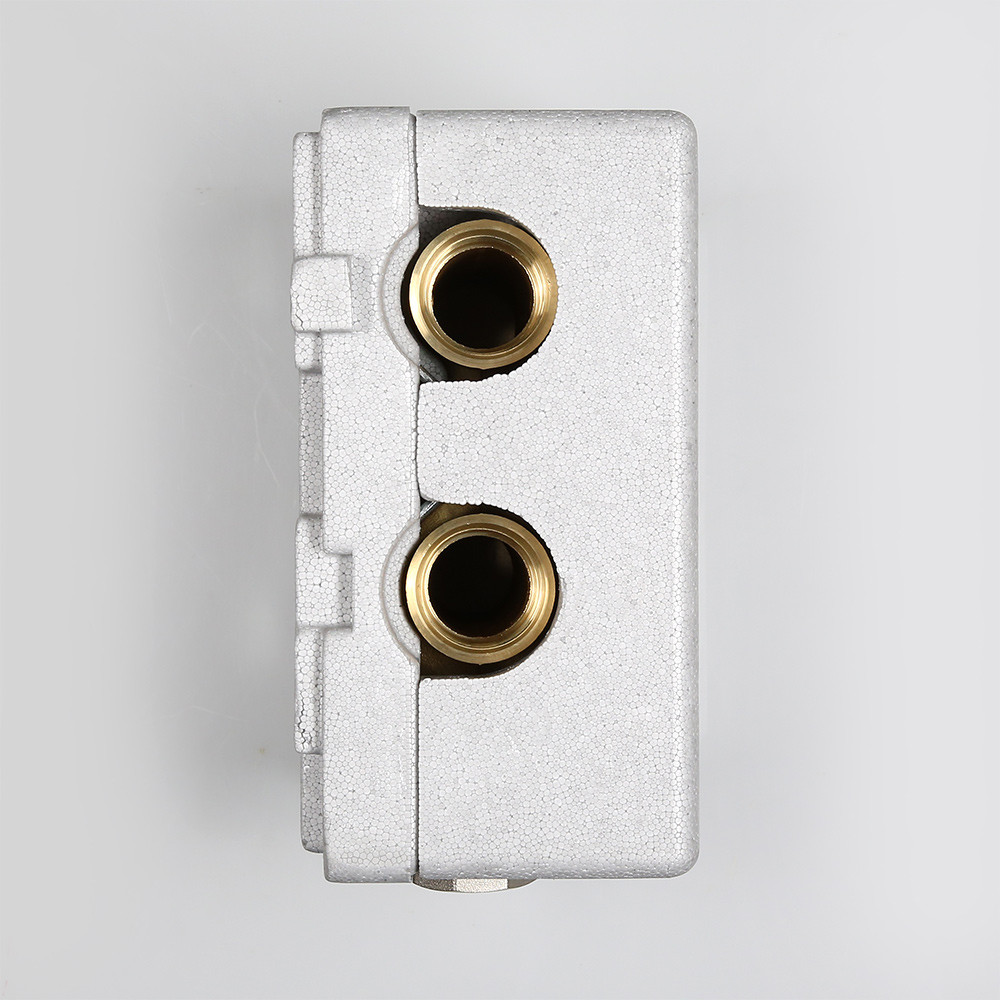 (VT.VAR30.G) Модули быстрого монтажа VARIMIX – продуманные конструкторами, компактно собранные и теплоизолированные в заводских условиях арматурные узлы. Их применение позволяет до минимума сократить время проектирования и монтажа системы теплоснабжения объектов, избежать проектных и монтажных ошибок. При этом стоимость готового модуля ниже стоимости аналогичного по составу набора элементов, приобретаемых по отдельности. В системе VARIMIX модули VT.VAR30 служат для распределения теплоносителя к насосным группам и насосно-смесительным узлам отопительных контуров (к каждому модулю присоединяется один контур). Коллекторные модули могут последовательно соединяться между собой в блоки. Материал трубопроводов модуля – бронза марки OTS 60PB2 (EN 1982-00). Модули комплектуются встроенными шаровыми кранами (на отводах), теплоизоляцией из пенополистирола, средствами крепежа и полусгонами с накидными гайками для подключения насосных групп и насосно-смесительных узлов. Сборка коллекторов между собой и с гидравлическим разделителем VT.VAR 00 (его применение рекомендуется VALTEC) осуществляется с помощью сдвоенного резьбового ниппеля VT.0606 (диаметр – 1 1/4"). Условный диаметр отходящих патрубков – 32 мм. Максимальная тепловая мощность присоединенной системы – 104 кВт (при Δt = 20 °С).