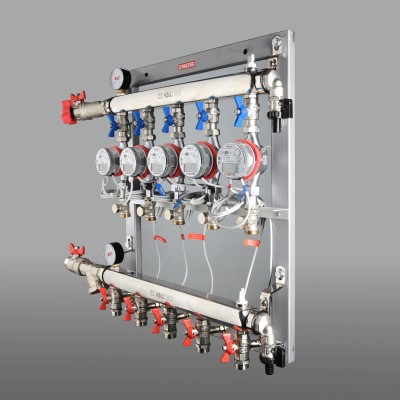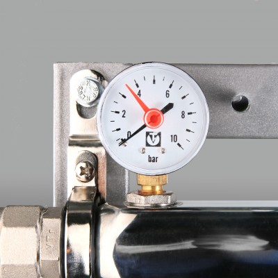 (VT.GP.31) Комплект манометров (опция) на подающий и обратный коллекторы этажных узлов для поквартирного учета тепловой энергии. Включает в себя два манометра VT.TM50.D (нижнее подключение, диапазон показаний давления – 0–10 бар, диаметр корпус – 50 мм), а также два резьбовых фитинга VTr.581.N0402 (футорка 1/2" х 1/4").