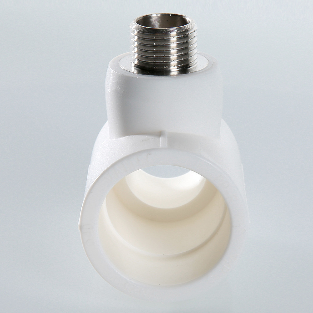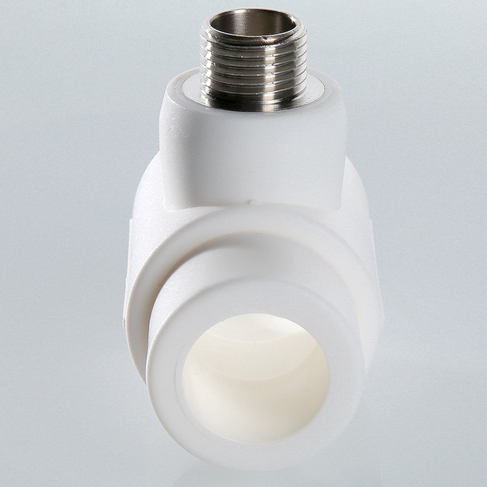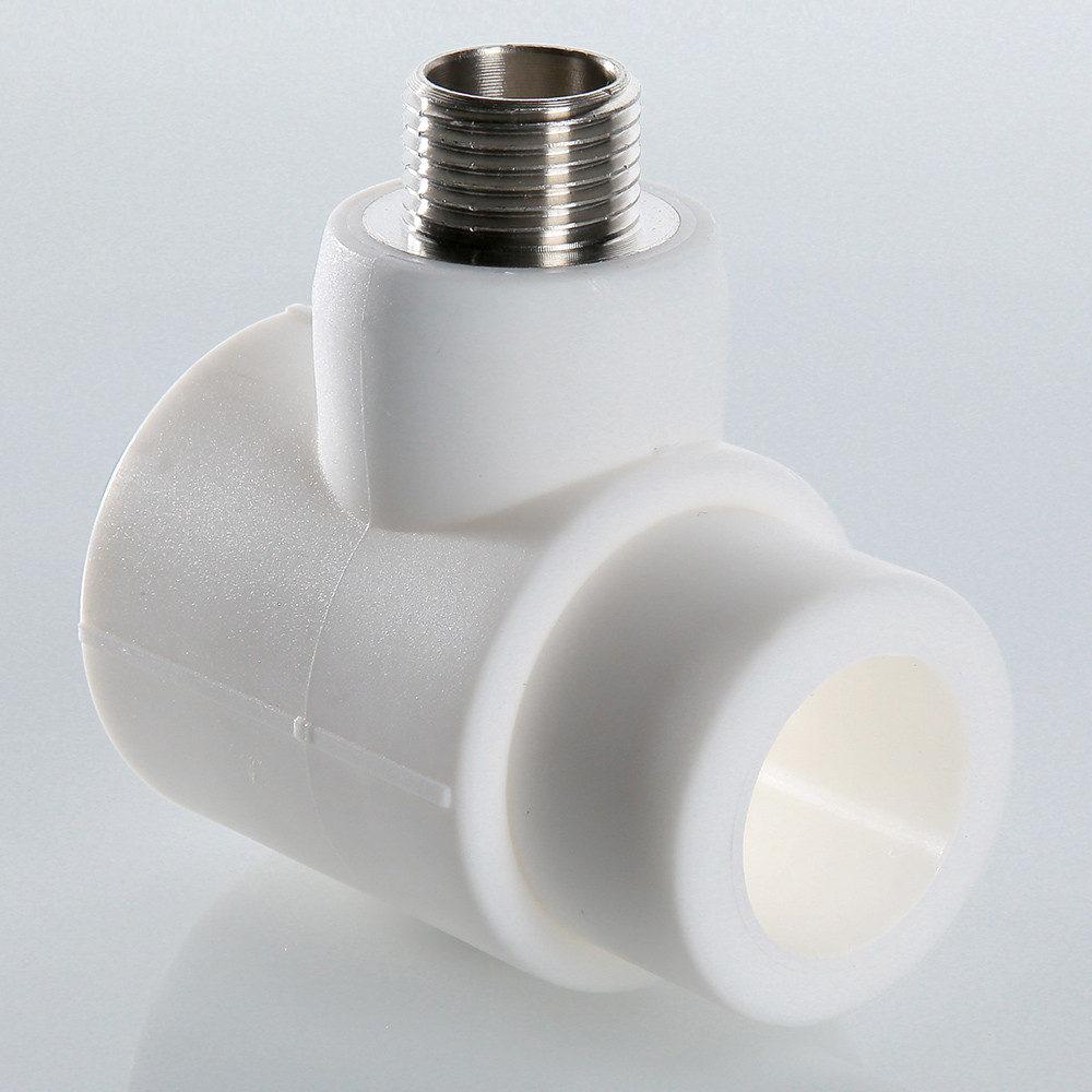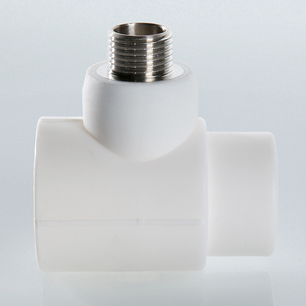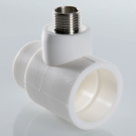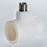 (VTp.734.0) Тройник полипропиленовый коллекторный с наружной резьбой можно применить для изготовления коллекторов: сваривая фитинги друг с другом, монтажник получит распределитель потоков с необходимым числом выходов (межцентровое расстояние – 53–54 мм). Благодаря разборным соединениям использовать такое изделие бывает удобнее, чем готовый полипропиленовый коллектор с отводами под приварку PPR-труб. Корпус тройника выполнен из полипропилена PP-R 100, закладная резьбовая деталь – латунная (марка сплава – CW617N, способ изготовления – горячее штампование), никелированная. Диаметр патрубков под муфтовую сварку (внутренний/наружный) – 40 мм, резьбы – 1/2, 3/4".