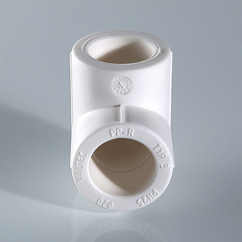 (VTp.751.0) Двухсторонний фитинг для соединения элементов полипропиленового трубопровода под углом 90° друг к другу. Монтаж осуществляется методом раструбной сварки.