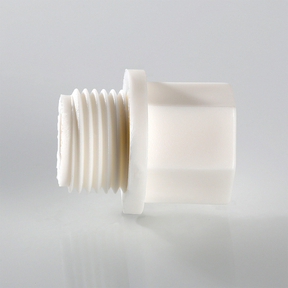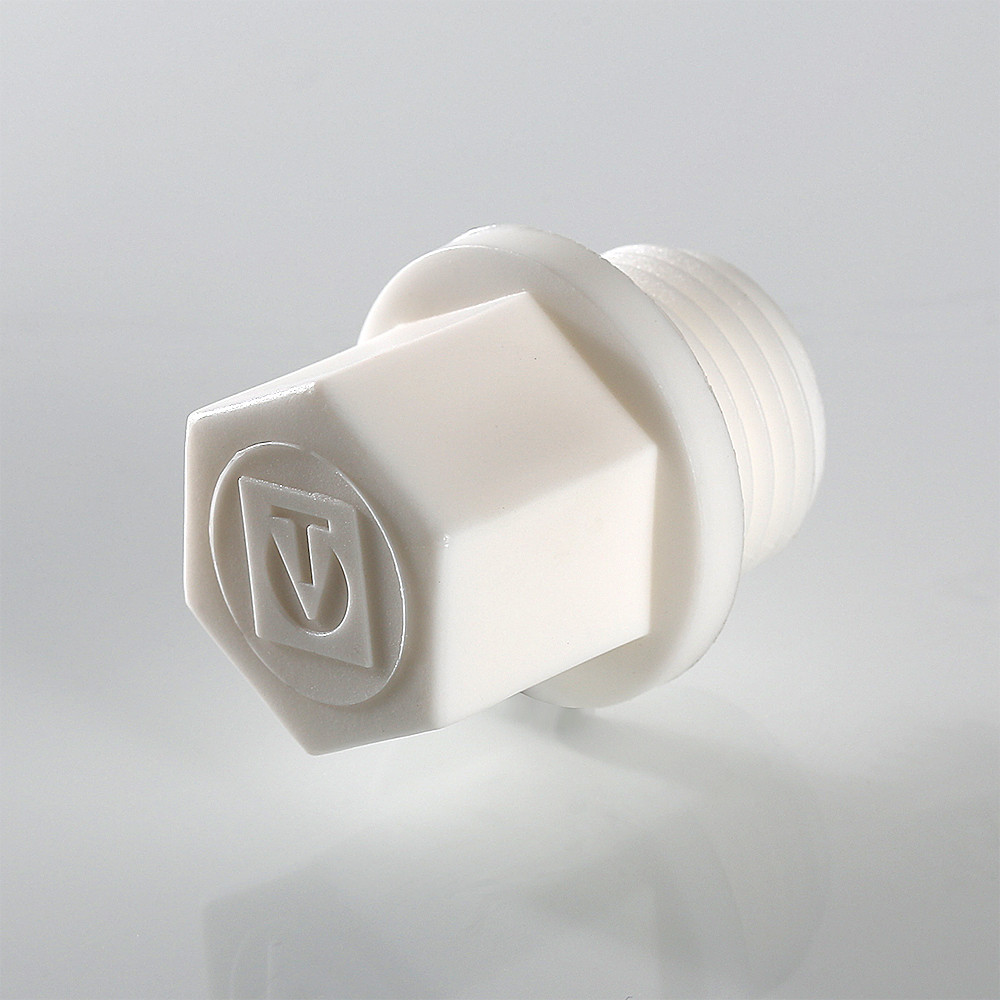 (VTp.791.0) Пробка полипропиленовая с резьбой предназначена для герметичного перекрытия трубопровода в неиспользуемых патрубках фитингов или арматуры с внутренней резьбой. Имеет шестигранный корпус, под гаечный ключ, и реборду.