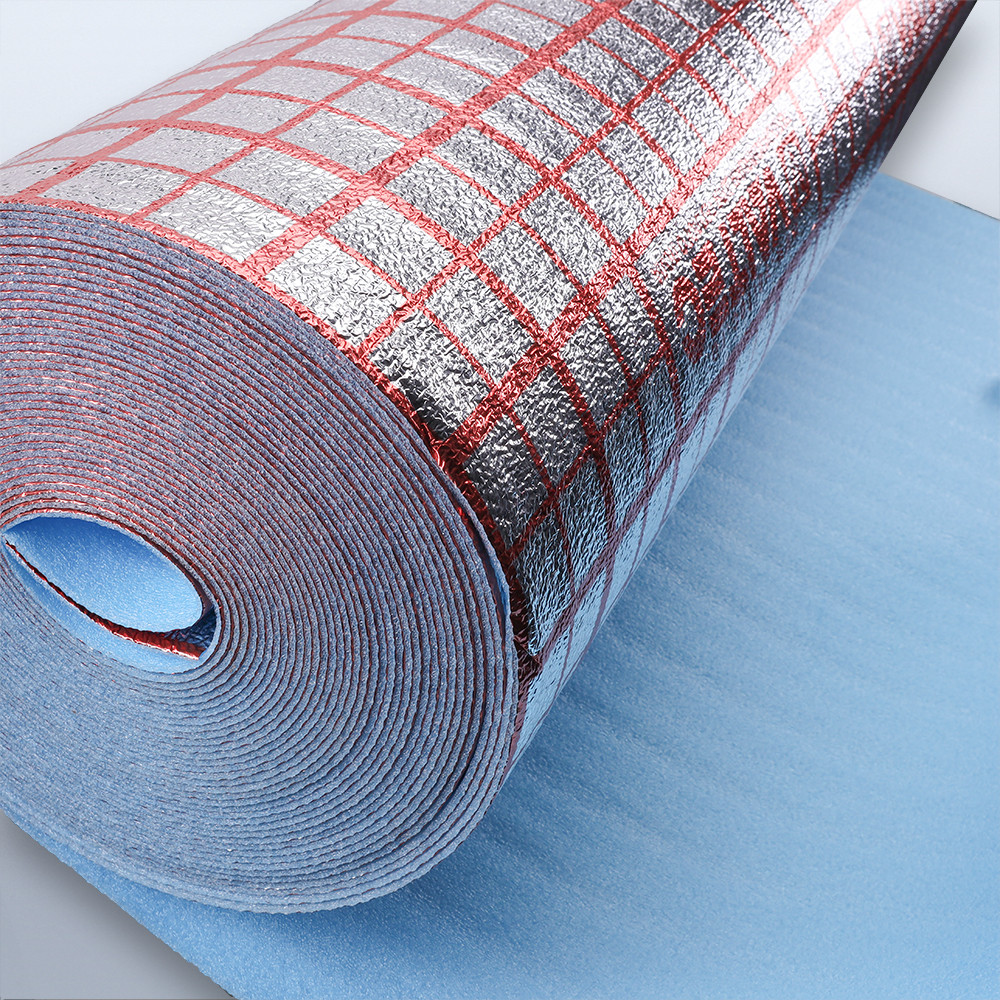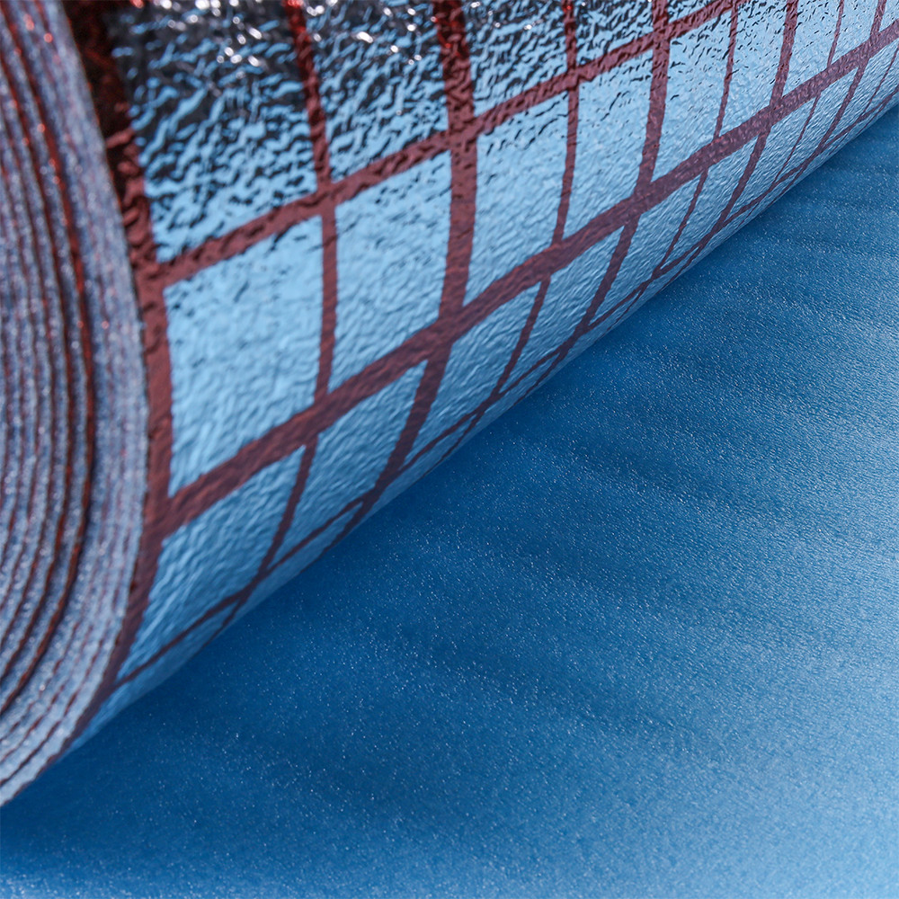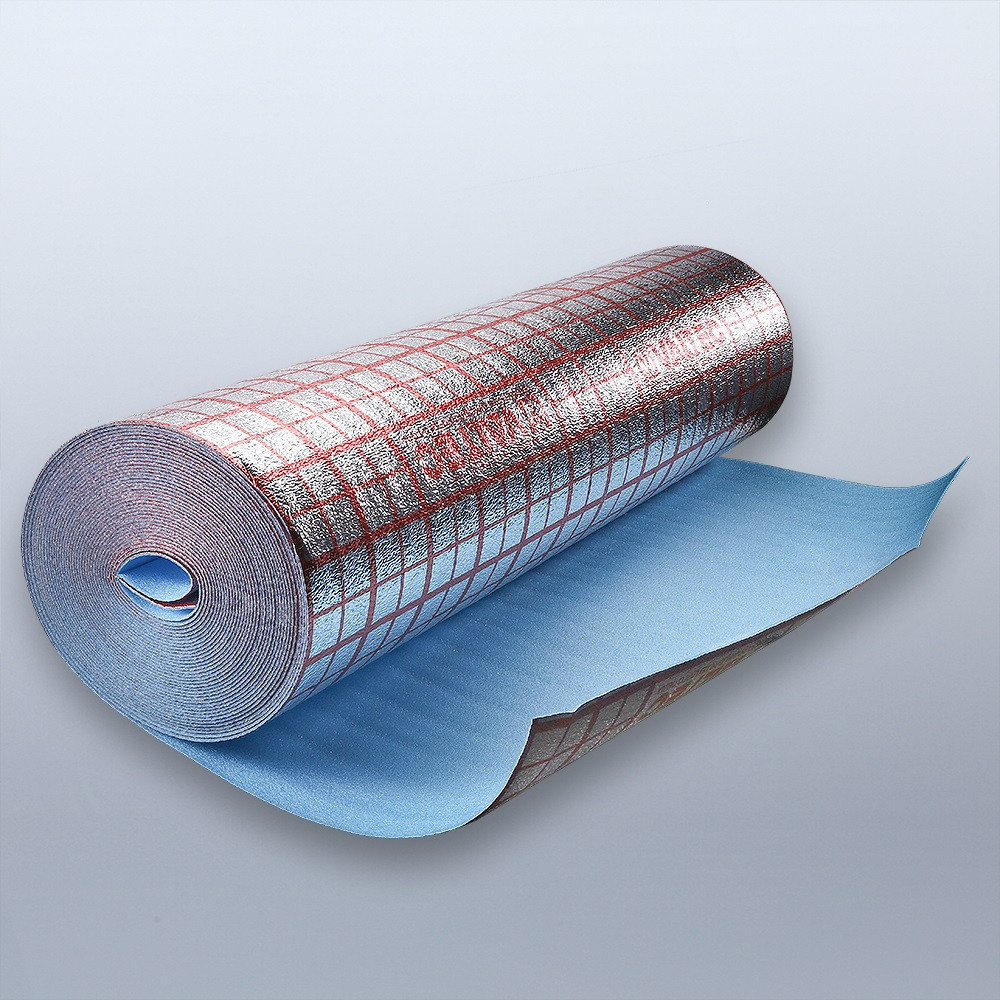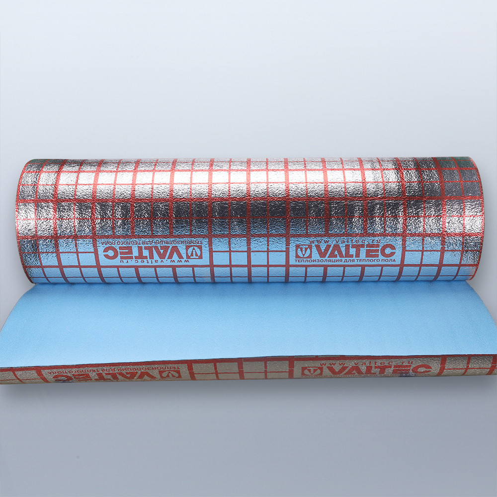 (VT.HS.FP) Комбинированный материал из вспененного полиэтилена с покрытием металлизированной пленкой и нанесенной разметкой. Эффективная тепло-, звукоизоляция, снижающая тепловые потери и обеспечивающая снижение ударного шума через перекрытие.