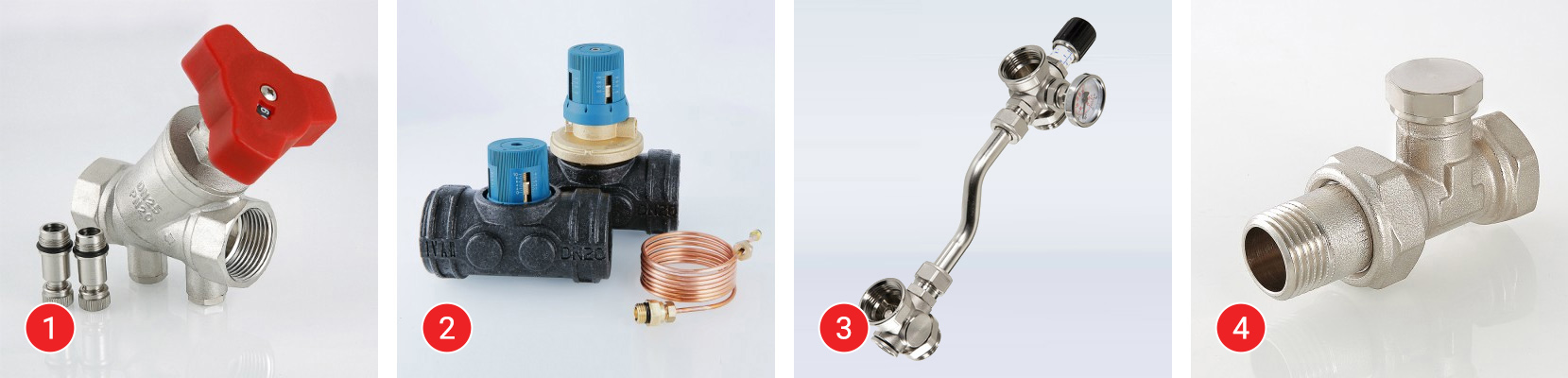 Возможность балансировки достигается благодаря включению в состав этажных узлов следующих устройств их ассортимента регулирующей арматуры VALTEC: