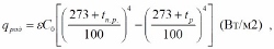 qконв = [2,26 · (0 – tр)1/3 + 2,6 · vр ] · (0 – tр), Вт/м2.