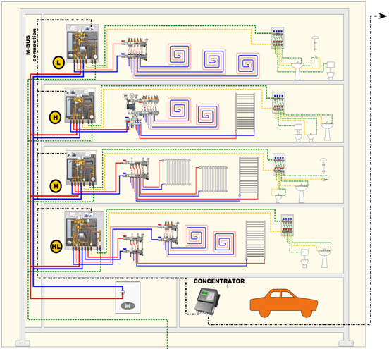 Однако традиционные подходы к построению систем тепло- и водоснабжения на основе применения вертикальных (стояковых) систем не позволяют реализовать корректный индивидуальный учет затрат на отопление в каждой квартире. Кроме того, что устанавливать теплосчетчики на каждом отопительном приборе (стояке) в каждой комнате крайне дорого и нерационально, это: