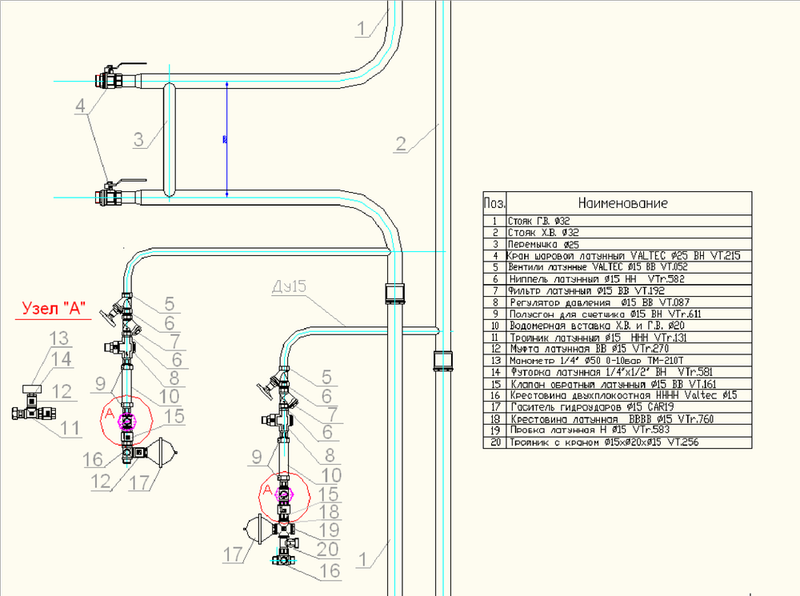 Рис. 13. Узел квартирного ввода водопровода ДСК-1