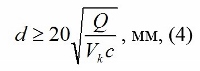Диаметр подводящей линии к мембранному расширительному баку должен быть не менее рассчитанного по следующей формуле:![]() где Q – мощность котла, Вт; Vk – объем воды в котле, л, с – теплоемкость теплоносителя Дж/кг · К.