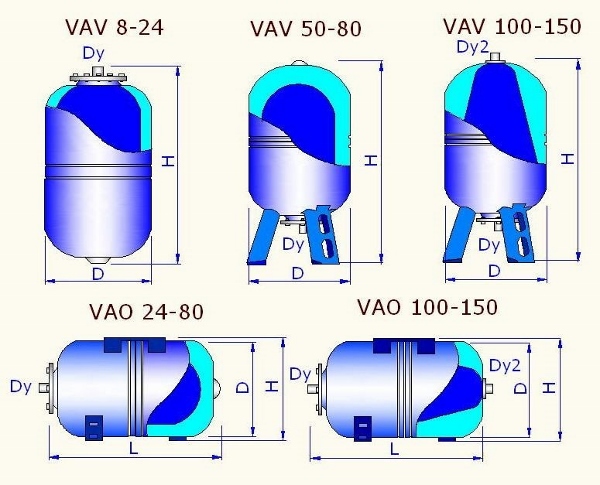 Мембранные баки подразделяются на расширительные баки, использующиеся в системах отопления и горячего водоснабжения, и гидроаккумуляторы, применяемые в системах холодного водоснабжения при подаче воды в дом от внешнего источника.
