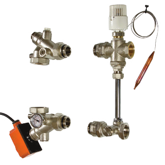 Узел поставляется с термоголовкой VT.3011, имеющей диапазон настройки температур от 20 до 62 °С. Вместо термоголовки может быть установлен аналоговый термоэлектрический сервопривод VT.TE3061, работающий под управлением контроллера VT.K200.М. Узел поставляется без циркуляционного насоса.
