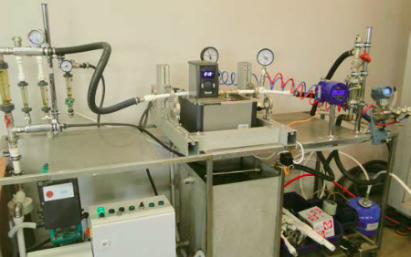 Клапаны испытываются на специальном стенде, показанном на рис. 4. В ходе испытаний поддерживается постоянный перепад давления на клапане равный 10 кПа. Температура воздуха имитируется при помощи термостатической ванны с водой, в которую погружается термоголовка. Температура воды в ванне постепенно повышается, при этом фиксируются расходы воды через клапан до полного закрытия.