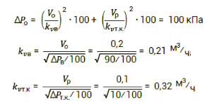 где Vо – общий расход, м3/ч, Vр – расход через радиаторы, м3/ч, kvв – пропускная способность вентиля, м3/ч, kvт.к. – пропускная способность термостатических клапанов, м3/ч, ΔPв – перепад давления на вентиле, Па, ΔPт.к – перепад давления на термостатическом клапане, Па.