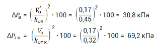 Потери давления на вентиле снизятся, так как общий расход через вентиль уменьшился с 0,2 до 0,17 м3/ч. Потери давления на термостатическом клапане наоборот вырастут, потому что расход через него вырос с 0,1 до 0,17 м3/ч. Потери давления на вентиле и термостатическом клапане составят:
