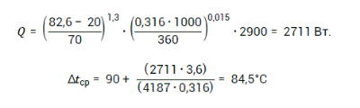 Предположим, что отопительный прибор имеет номинальную теплоотдачу Qн = 2900 Вт, расчётные параметры теплоносителя 90/70 ˚С. Коэффициенты для радиатора принимаются: n = 0,3, p = 0,015. В расчётный период при расходе 0,1 м3/ч такой отопи- тельный прибор будет иметь мощность: