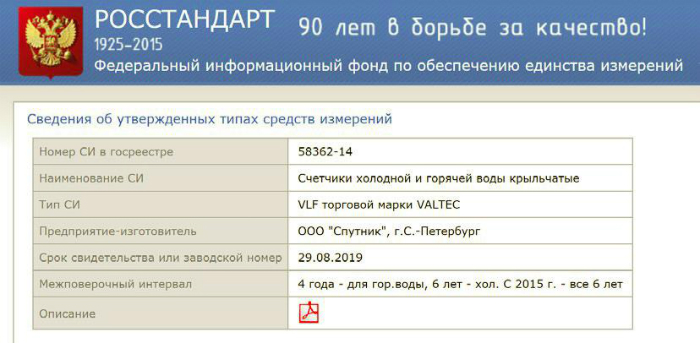 Во-первых, любой прибор учета должен быть внесен в Государственный реестр средств измерений (рис. 1). Если это произведено, то никто не может запретить его установку или отказать в приемке водосчетчика в эксплуатацию.