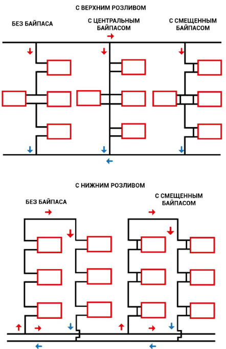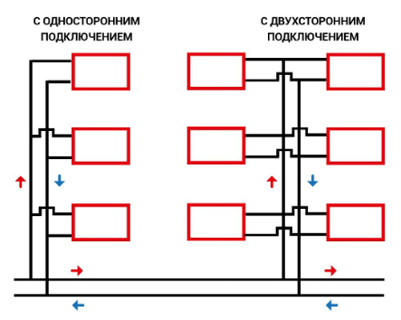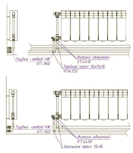 Рис. 16. Вариант подключения радиаторов при плинтусной разводке