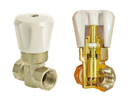 В этом отношении наиболее приемлемым и надёжным представляется использование кранов двойной регулировки КРДП (рис. 9). Особенность этих кранов заключается в том, что изменить монтажную настройку крана можно только при слитом теплоносителе, а значит, несанкционированное вмешательство исключено.