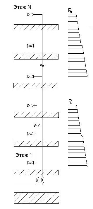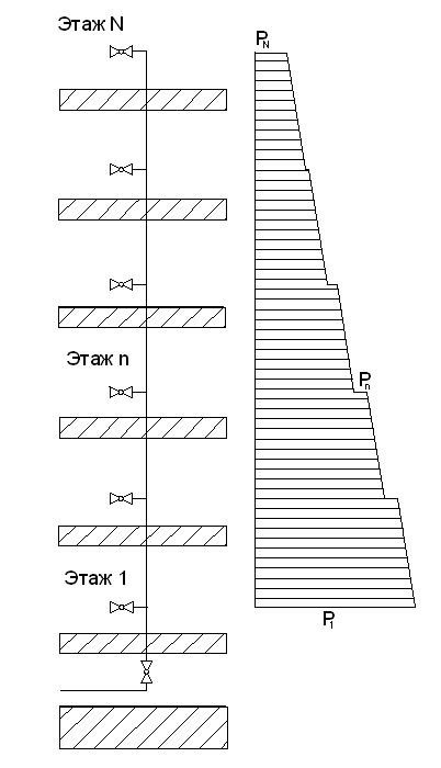 Рис. 1. Распределение давления в водопроводе многоэтажного дома
