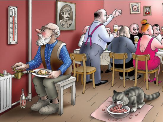Рис. 5. Карикатура, иллюстрирующая пользование ручным радиаторным клапаном